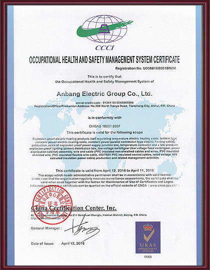 安邦電氣股份有限公司,總部位于北京市長安街,成立于2004年,注冊資金10088萬。安徽生產(chǎn)基地占地面積63000平方米,擁有66套各類生產(chǎn)線,其中進口生產(chǎn)線6套。國家高新技術型企業(yè),滁州市市長質量獎企業(yè),專精特新“小巨人”企業(yè),擁有國家知識產(chǎn)權局授權的45項專利,其中發(fā)明專利28項 , 主筆《太陽能熱利用自限溫電熱帶安裝規(guī)范》行業(yè)標準,參編《自限溫電伴熱帶》國家標準、《工業(yè)和商業(yè)用電阻式伴熱系統(tǒng)》國家標準、《太陽能熱利用自限溫電熱帶》行業(yè)標準、《爆炸性環(huán)境 電阻式伴熱器》國家標準等7項國家標準。企業(yè)通過UL認證,國家強制性 CCC產(chǎn)品認證,ISO9001質量管理體系認證,ISO14001環(huán)境管理體系認證,ISO45001職業(yè)健康安全管理體系認證,Q/SHS0001.1健康、安全與環(huán)境管理體系認證,歐盟防爆ATEX認證,歐盟CE認證,RoHS認證,俄羅斯海關聯(lián)盟認證,國家防爆電氣CCC證書。產(chǎn)品系列:集膚伴熱系統(tǒng)、電伴熱系統(tǒng)、電加熱器、電地暖系統(tǒng)、集儀器儀表、電線電纜、高低壓配電柜(箱)、電纜橋架、閥門管件等等設計、制造、銷售。產(chǎn)品應用于航天航空、軍工、石油、石化、天然氣、機場、化工、鋼鐵、隧道、消防、養(yǎng)殖、融雪化冰、室內(nèi)供暖、國家電網(wǎng)及眾多電廠等等國家重點工程。出口美國、英國、德國、俄羅斯、韓國、日本、哈薩克斯坦、烏克蘭、伊朗等眾多國家。